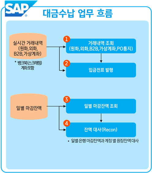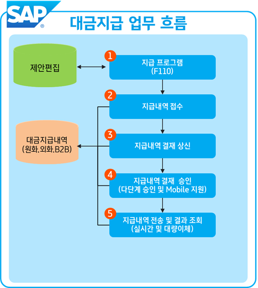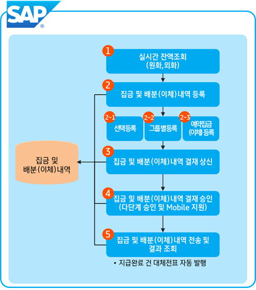 SAP-FBS는 대금지급업무의 중앙 집중화,대금수납업무의 자동화,실시간 가용자금 관리를 통해 자금관리 업무 프로세스를 관리하는 통합 자금관리 솔루션입니다.