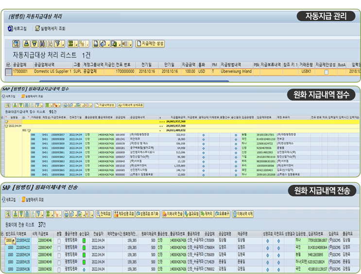 | SAP 표준 연계 | SAP 기준정보 및 재무회계 모듈 과의 유기적 통합 처리 |