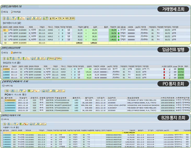 SAP ERP에 직접 내장 가능한 펌뱅킹 연동 모듈로, 국내 모든 금융기관과의 실시간 자금 거래를 SAP 내에서 바로 처리할 수 있는 고도화된 전자금융 솔루션입니다.